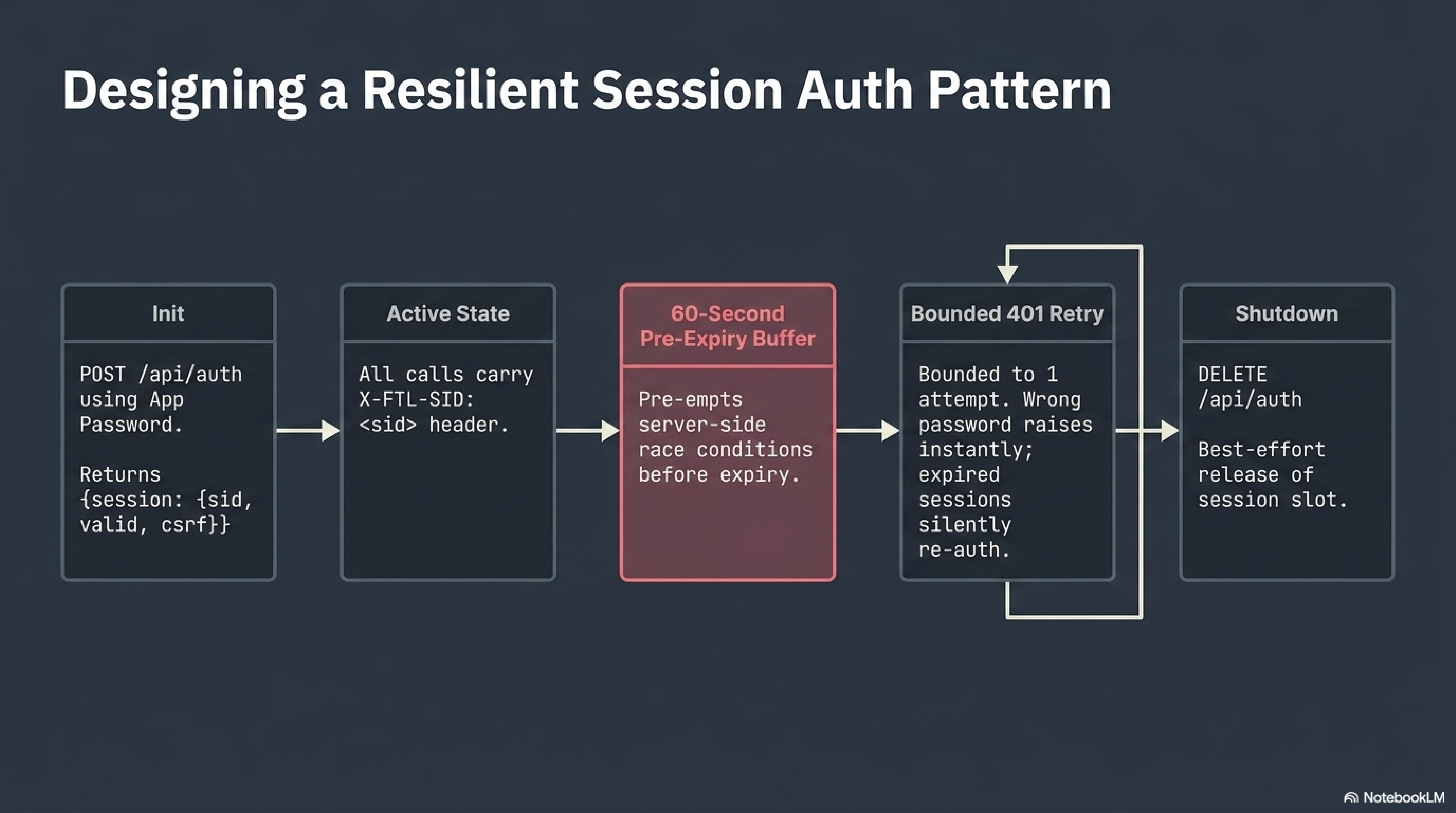 Pre-expiry refresh buffer, bounded 401 retry, best-effort release on shutdown. The shape transfers to any auth-gated REST API. I used it for UniFi cookies. I used it again for Pi-hole session headers. When you reach the third one, extract a reusable client base class.