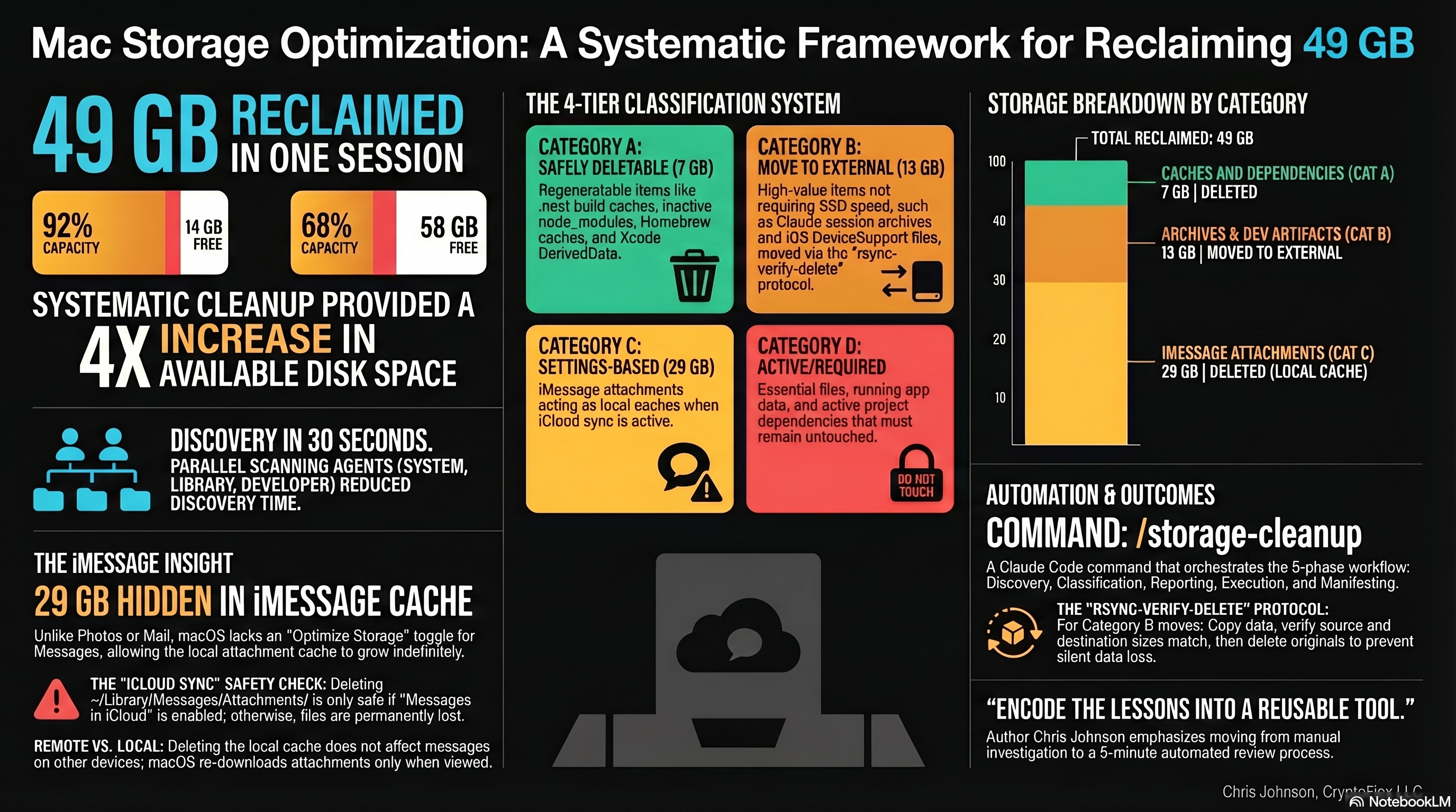 Written by Chris Johnson and edited by Claude Code (Opus 4.6). The /storage-cleanup command and full configuration are available in the claude-code-config repo.