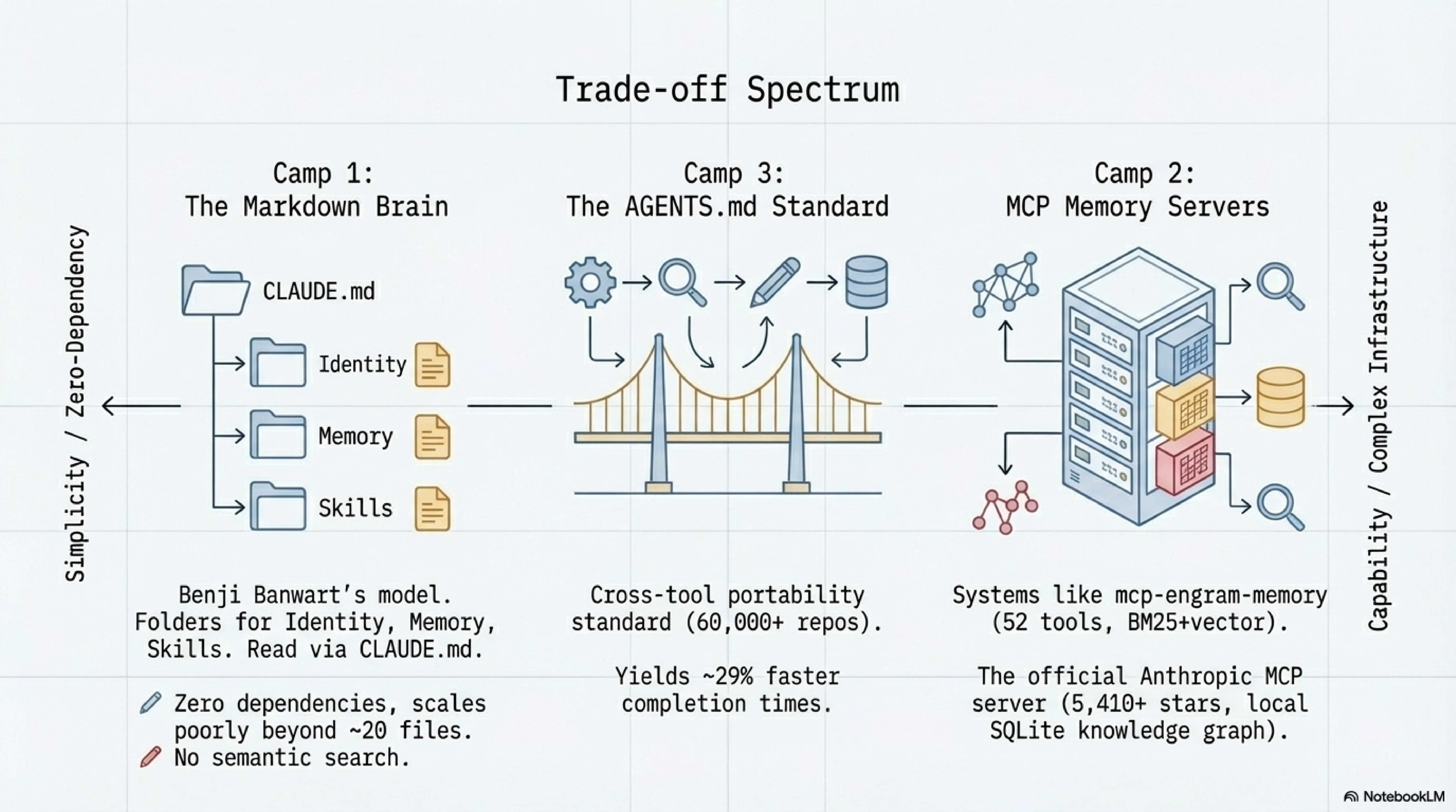 The research revealed three distinct camps. Each represents a different trade-off between simplicity and capability.