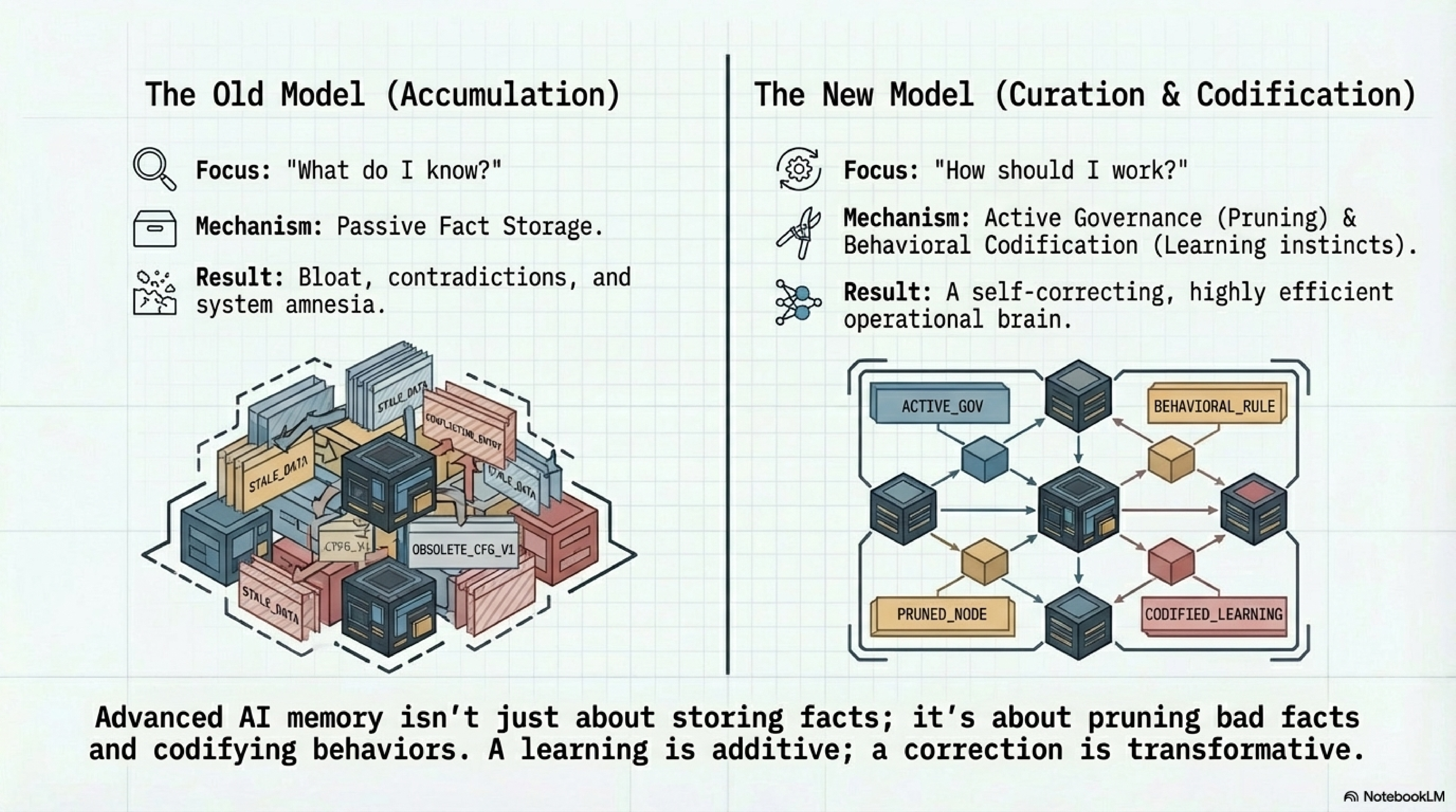 The research from db0.ai and the mcp-memory-engine project highlighted a problem I'd been ignoring: fact accumulation. My vector memory stores facts but never retires superseded ones. When I search for "Syncthing configuration," I get results from six months ago alongside current state, with no way to know which is correct.